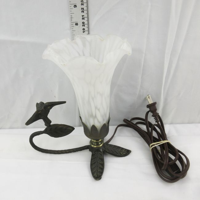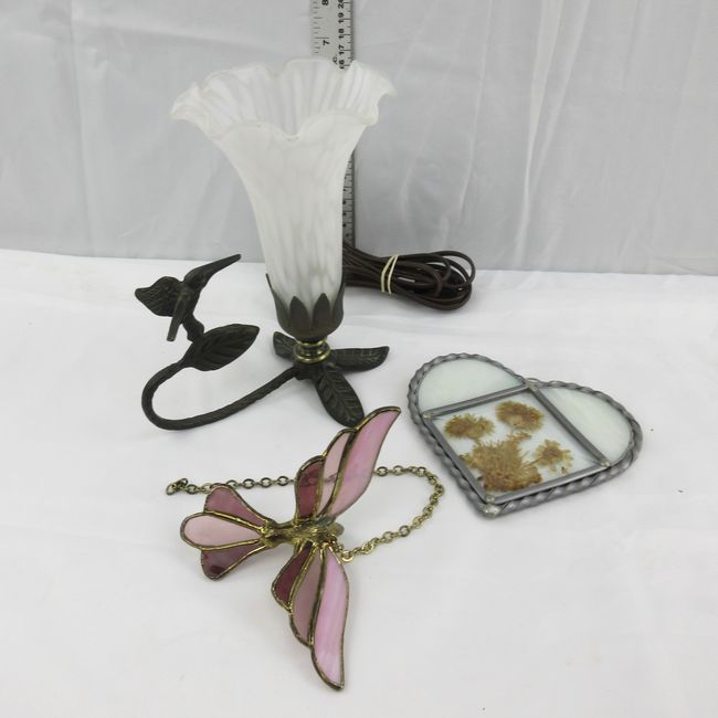 Current Bid: $16.88 [Refresh Price]YOU WILL NEED TO REFRESH THIS PAGE TO SEE UPDATED BID (Log in and this will update automatically) You must LOG IN or REGISTER to see this full page auction listing and bid. Auction is Over Winning Bid Amount: $16.88 **Lot Details: (LOT: F232) - Hummingbird Lily Lamp , nightlight , with pewter and glass heart shape with dried flowers hanging Decor 5” x 6”, with hanging hummingbird Log in to add this lot to your watch list or place a bid |
