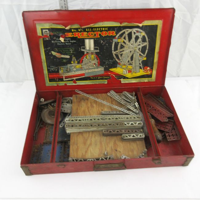 Current Bid: $7.00 [Refresh Price]YOU WILL NEED TO REFRESH THIS PAGE TO SEE UPDATED BID (Log in and this will update automatically) You must LOG IN or REGISTER to see this full page auction listing and bid. Auction is Over Winning Bid Amount: $7.00 **Lot Details: (LOT: F241) - Box of OLD Meccano in an old metal case No. 8.5 Erector Kit Not all of the pieces are there, but there’s a variety of pieces to build with Log in to add this lot to your watch list or place a bid |