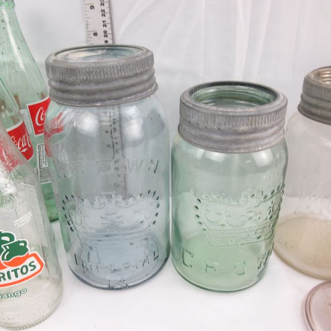 Current Bid: $25.00 [Refresh Price]YOU WILL NEED TO REFRESH THIS PAGE TO SEE UPDATED BID (Log in and this will update automatically) You must LOG IN or REGISTER to see this full page auction listing and bid. Auction is Over Winning Bid Amount: $25.00 **Lot Details: (LOT: F243) - Sealers and bottles lot. Includes a cornflower blue and a green crown jar! Two really nice colors. Box of Sealers 4 Crown and 1 and Perfect seal, Mid-West) and 6 pop bottles Log in to add this lot to your watch list or place a bid |