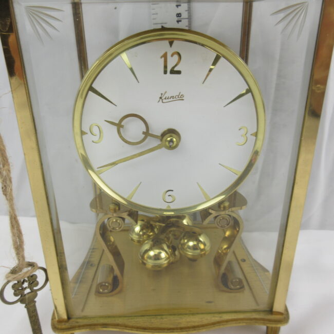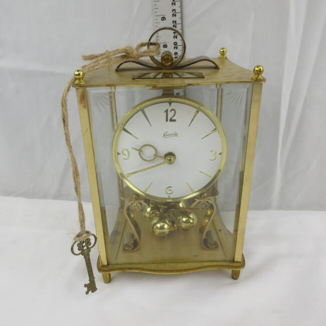 Current Bid: $42.01 [Refresh Price]YOU WILL NEED TO REFRESH THIS PAGE TO SEE UPDATED BID (Log in and this will update automatically) You must LOG IN or REGISTER to see this full page auction listing and bid. Auction is Over Winning Bid Amount: $42.01 **Lot Details: (LOT: F202) - Beautiful vintage brass mantle clock made by Kindle. A plaque on top is dated December 1967. Key is attached. This is a classic and is very heavy. No flaws anywhere. The front glass has bevelled glass and engraved co... Log in to add this lot to your watch list or place a bid |