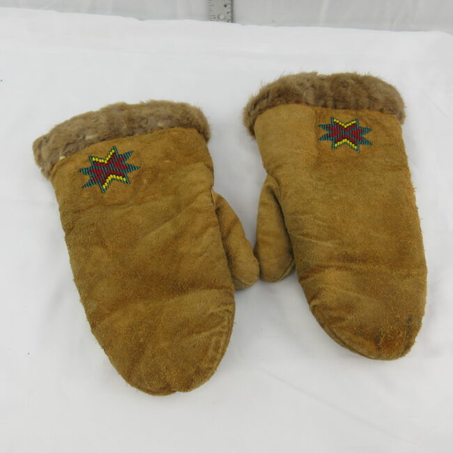 Current Bid: $21.22 [Refresh Price]YOU WILL NEED TO REFRESH THIS PAGE TO SEE UPDATED BID (Log in and this will update automatically) You must LOG IN or REGISTER to see this full page auction listing and bid. Auction is Over Winning Bid Amount: $21.22 **Lot Details: (LOT: F203) - Authentic antique moose hide aboriginal beaded mittens, size large. It appears to be rabbit fur on the edges. There is some wear on the fur, but that is just verifying its age really. These are truly a fantastic coll... Log in to add this lot to your watch list or place a bid |