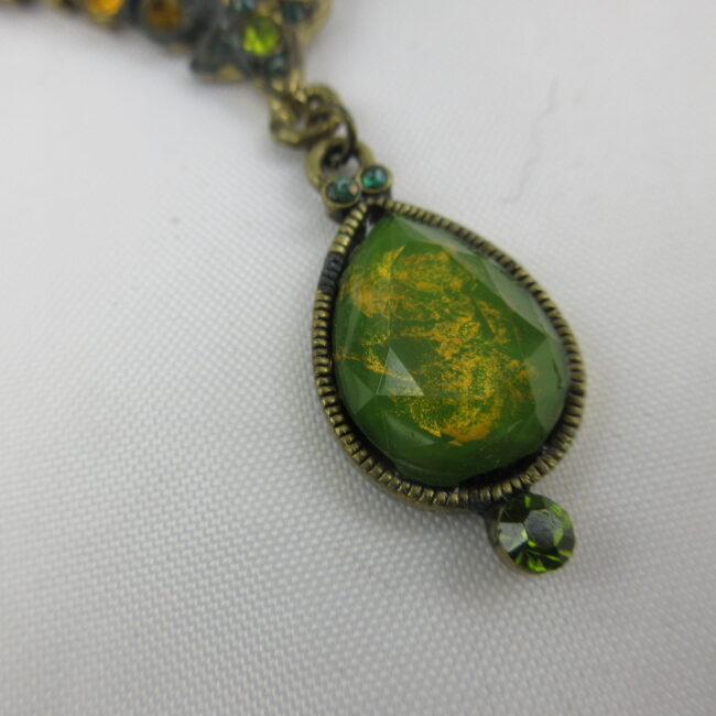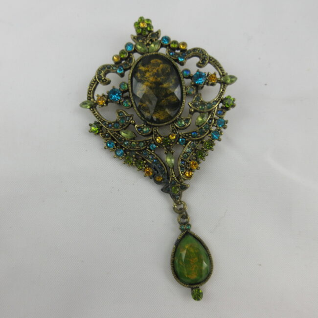 Current Bid: $23.00 [Refresh Price]YOU WILL NEED TO REFRESH THIS PAGE TO SEE UPDATED BID (Log in and this will update automatically) You must LOG IN or REGISTER to see this full page auction listing and bid. Auction is Over Winning Bid Amount: $23.00 **Lot Details: (LOT: F204) - A gorgeous large vintage style teardrop brooch with tortoiseshell faceted glass in the center. Beautiful rhinestones of turquoise, amber and light green. No stones missing. There is a lot of workmanship in this broa... Log in to add this lot to your watch list or place a bid |