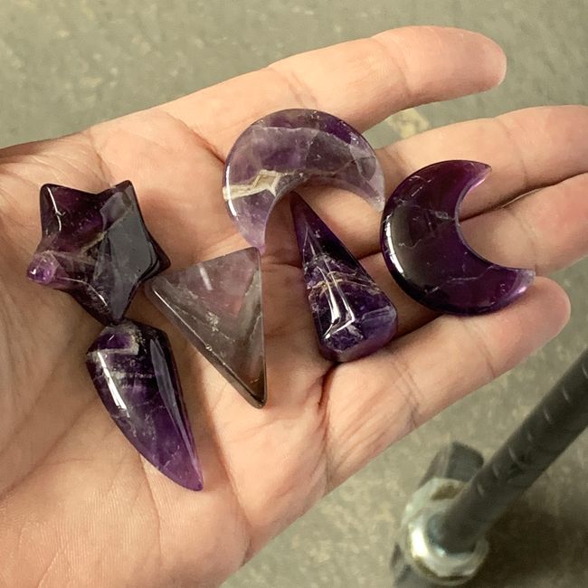 Current Bid: $12.00 [Refresh Price]YOU WILL NEED TO REFRESH THIS PAGE TO SEE UPDATED BID (Log in and this will update automatically) You must LOG IN or REGISTER to see this full page auction listing and bid. Auction is Over Winning Bid Amount: $12.00 **Lot Details: (LOT: G313) - amethyst carved into moons stars and other shapes Log in to add this lot to your watch list or place a bid |