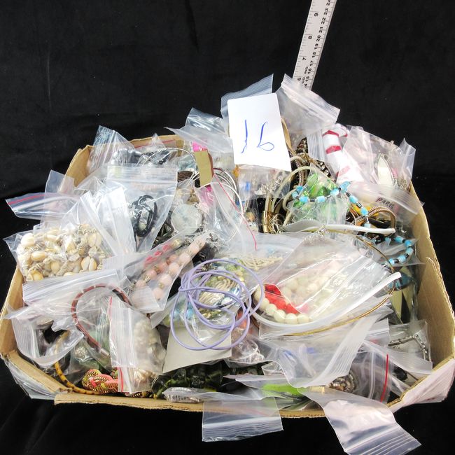 Current Bid: $41.00 [Refresh Price]YOU WILL NEED TO REFRESH THIS PAGE TO SEE UPDATED BID (Log in and this will update automatically) You must LOG IN or REGISTER to see this full page auction listing and bid. Auction is Over Winning Bid Amount: $41.00 **Lot Details: (LOT: E253) - Over 13 pounds of mostly wearable jewelery. .some may be fixing or used for crafts,, but not much. Log in to add this lot to your watch list or place a bid (Number of people watching this lot: 9) |