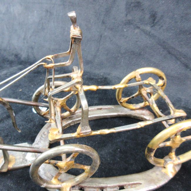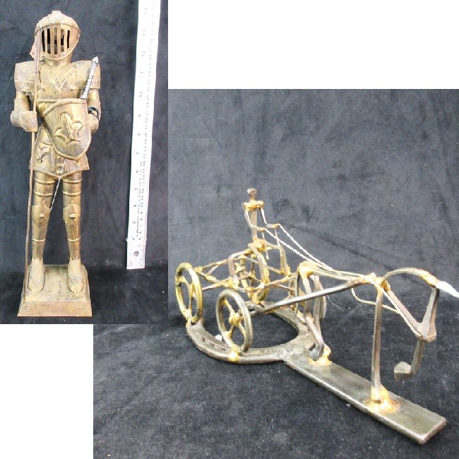 Current Bid: $7.00 [Refresh Price]YOU WILL NEED TO REFRESH THIS PAGE TO SEE UPDATED BID (Log in and this will update automatically) You must LOG IN or REGISTER to see this full page auction listing and bid. Auction is Over Winning Bid Amount: $7.00 **Lot Details: (LOT: E255) - Vintage metal works~ 15`` armoured knight with shield, spear and a very sharp sword.(spot welded metal) Bull pulling wagon and man in the driver seat all brazed together. Both hand crafted! Log in to add this lot to your watch list or place a bid (Number of people watching this lot: 1) |