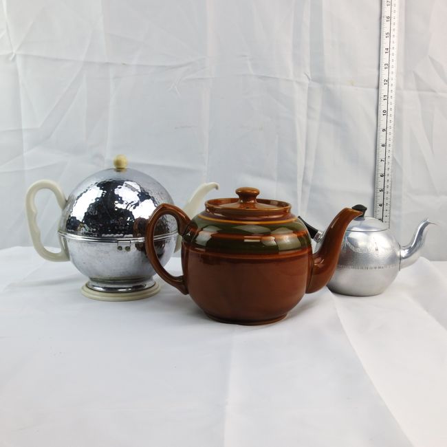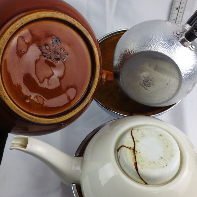 Current Bid: $7.00 [Refresh Price]YOU WILL NEED TO REFRESH THIS PAGE TO SEE UPDATED BID (Log in and this will update automatically) You must LOG IN or REGISTER to see this full page auction listing and bid. Auction is Over Winning Bid Amount: $7.00 **Lot Details: (LOT: R205) - Three vintage teapots. Sadler, England, traditional "Brown Betty", Swan brand, made in England little teapot, 1930s art deco, German, insulated teapot, damaged lid on inner teapot. Log in to add this lot to your watch list or place a bid (Number of people watching this lot: 2) |