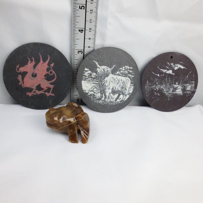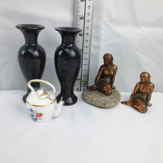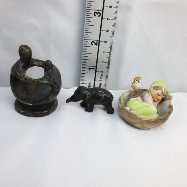 Current Bid: $25.00 [Refresh Price]YOU WILL NEED TO REFRESH THIS PAGE TO SEE UPDATED BID (Log in and this will update automatically) You must LOG IN or REGISTER to see this full page auction listing and bid. Auction is Over Winning Bid Amount: $25.00 **Lot Details: (LOT: R215) - A small lot of miniature figurines and trinkets. A half inch tall & 1.5 inch long metal elephant. A hand carved African Shona family Circle, (represents family, unity & harmony, It is 2” with a 1.5” base & usual... Log in to add this lot to your watch list or place a bid |