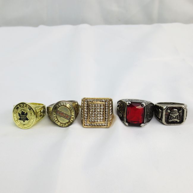 Current Bid: $11.00 [Refresh Price]YOU WILL NEED TO REFRESH THIS PAGE TO SEE UPDATED BID (Log in and this will update automatically) You must LOG IN or REGISTER to see this full page auction listing and bid. Auction is Over Winning Bid Amount: $11.00 **Lot Details: (LOT: R225) - Five men’s rings. Two official NHL rings, Toronto is in new condition, size 10.5, the Rangers has much wear around band, size 10.5. A silver-tone, with large red stone size 14. - 14.5, another silver-tone Vikin... Log in to add this lot to your watch list or place a bid |
