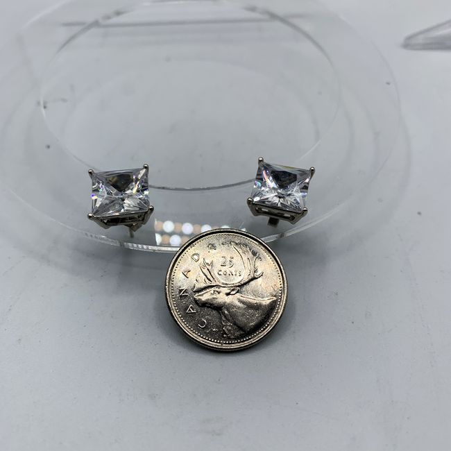 Current Bid: $14.00 [Refresh Price]YOU WILL NEED TO REFRESH THIS PAGE TO SEE UPDATED BID (Log in and this will update automatically) You must LOG IN or REGISTER to see this full page auction listing and bid. Auction is Over Winning Bid Amount: $14.00 **Lot Details: (LOT: R32) - Spectacular Sterling Square faceted Brilliant Cut Sparkling new old stock Earrings with double high framed half inch wide sparkling stones and Sterling Butterfly Ends, 7.45 Grams, well done, Verified Sterling, ready f... Log in to add this lot to your watch list or place a bid (Number of people watching this lot: 1) |