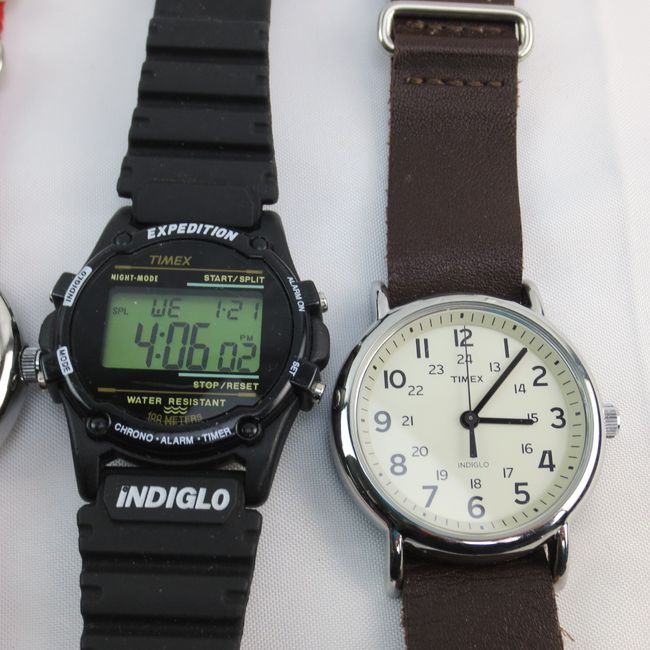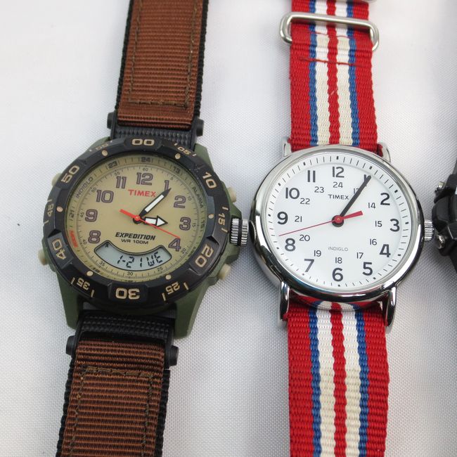 Current Bid: $33.00 [Refresh Price]YOU WILL NEED TO REFRESH THIS PAGE TO SEE UPDATED BID (Log in and this will update automatically) You must LOG IN or REGISTER to see this full page auction listing and bid. Auction is Over Winning Bid Amount: $33.00 **Lot Details: (LOT: R252) - Timex Watch Lot Pick one for your daily adventures! 2x large face easy read Indiglo with soft NATO straps. Timex Expedition with Indiglo, dual display and rugged military style strap. Indiglo Digital Expedition packe... Log in to add this lot to your watch list or place a bid |
