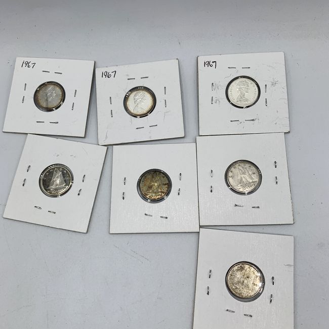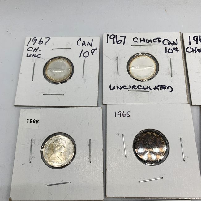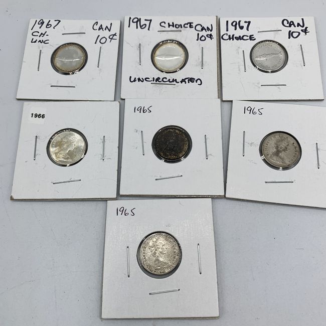 Current Bid: $37.00 [Refresh Price]YOU WILL NEED TO REFRESH THIS PAGE TO SEE UPDATED BID (Log in and this will update automatically) You must LOG IN or REGISTER to see this full page auction listing and bid. Auction is Over Winning Bid Amount: $37.00 **Lot Details: (LOT: R55) - 7 X Canada 10-Cent coins, Elizabeth II (1965 x3, 1966, 1967 x3), 50-80 per cent silver Log in to add this lot to your watch list or place a bid (Number of people watching this lot: 2) |