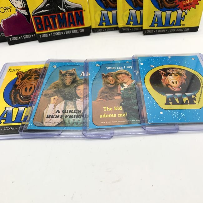 Current Bid: $11.00 [Refresh Price]YOU WILL NEED TO REFRESH THIS PAGE TO SEE UPDATED BID (Log in and this will update automatically) You must LOG IN or REGISTER to see this full page auction listing and bid. Auction is Over Winning Bid Amount: $11.00 **Lot Details: (LOT: R67) - Vintage 1989 Topps Batman movie trading card wax packs and 1987 ALF Series 1 and 2 collections. The unopened yellow wax packs contain five picture cards, one sticker, and a stick of bubble gum. The set features char... Log in to add this lot to your watch list or place a bid (Number of people watching this lot: 6) |
