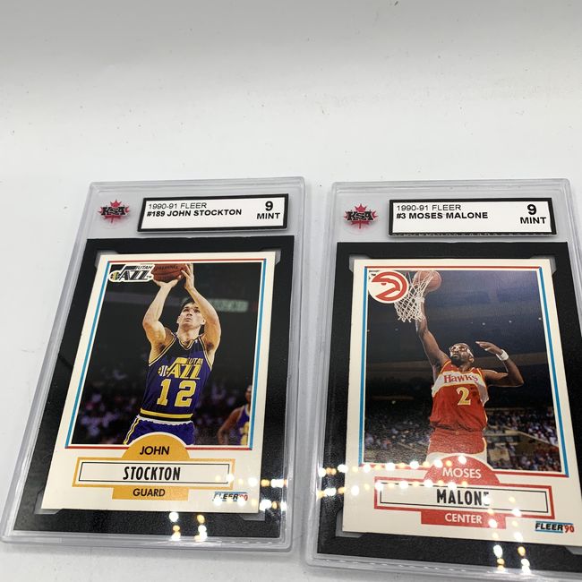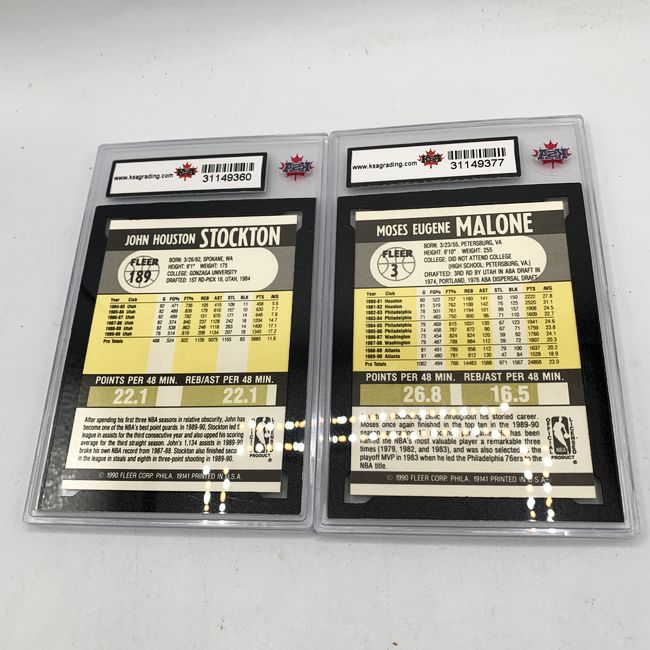 Current Bid: $19.00 [Refresh Price]YOU WILL NEED TO REFRESH THIS PAGE TO SEE UPDATED BID (Log in and this will update automatically) You must LOG IN or REGISTER to see this full page auction listing and bid. Auction is Over Winning Bid Amount: $19.00 **Lot Details: (LOT: R87) - Two MINT 9/10 two graded 1990-91 Fleer basketball cards, featuring John Stockton and Moses Malone. Log in to add this lot to your watch list or place a bid (Number of people watching this lot: 1) |