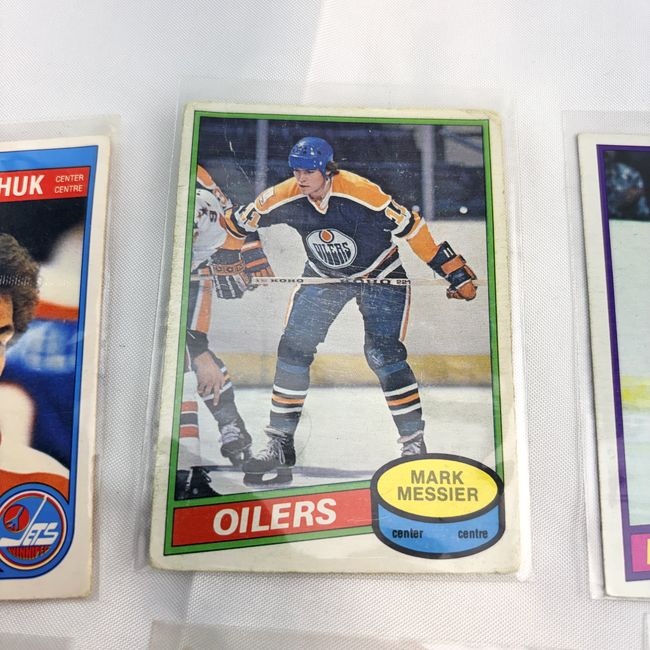 Current Bid: $25.01 [Refresh Price]YOU WILL NEED TO REFRESH THIS PAGE TO SEE UPDATED BID (Log in and this will update automatically) You must LOG IN or REGISTER to see this full page auction listing and bid. Auction is Over Winning Bid Amount: $25.01 **Lot Details: (LOT: R279) - Collection of Old Hockey Rookie Cards in as found condition. Mark Messier Rookie is a bit rough, but hey it's a Mark Messier Rookie Card. Also includes local Barrie legend Dale Hawerchuck. Log in to add this lot to your watch list or place a bid |