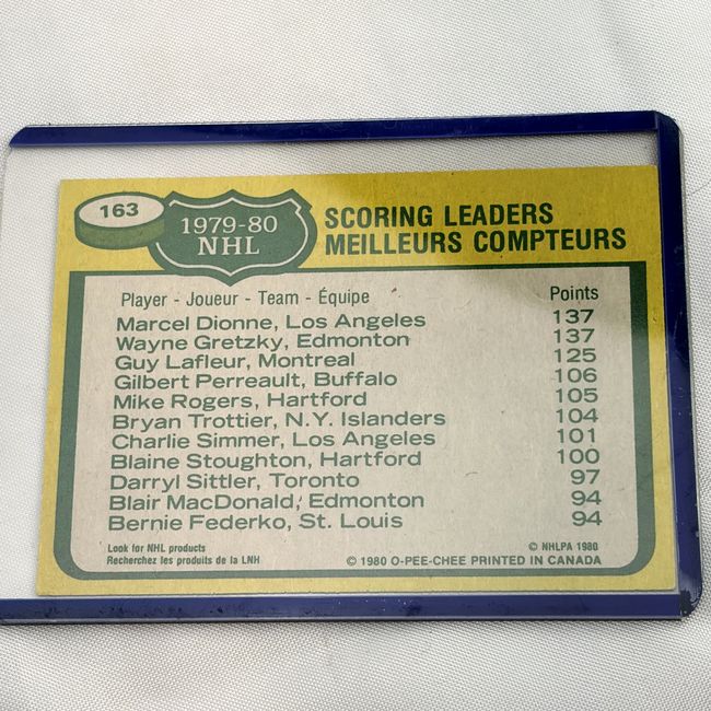 Current Bid: $13.00 [Refresh Price]YOU WILL NEED TO REFRESH THIS PAGE TO SEE UPDATED BID (Log in and this will update automatically) You must LOG IN or REGISTER to see this full page auction listing and bid. Auction is Over Winning Bid Amount: $13.00 **Lot Details: (LOT: R281) - NHL 1979-80 Scoring Leaders Card in very nice condition. This beauty of a card has Gretzky, Dionne, and Lafleur together on one card as the league's top scorers. Absolute Legends of the game! Log in to add this lot to your watch list or place a bid (Number of people watching this lot: 1) |