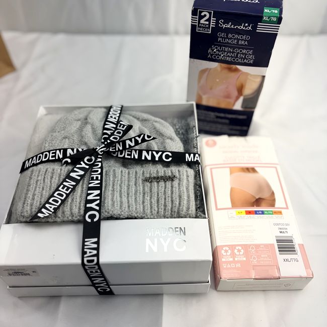 Current Bid: $15.00 [Refresh Price]YOU WILL NEED TO REFRESH THIS PAGE TO SEE UPDATED BID (Log in and this will update automatically) You must LOG IN or REGISTER to see this full page auction listing and bid. Auction is Over Winning Bid Amount: $15.00 **Lot Details: (LOT: R284) - A box of 6 ladies nearly nude assorted colored underwear. Soft Stretch Size XXL, fits waist of 43-44” ). Plus, a 2 pack box of Gel bonded plunge bras (black & White). Wire free and removable cups for fit flexibili... Log in to add this lot to your watch list or place a bid (Number of people watching this lot: 1) |