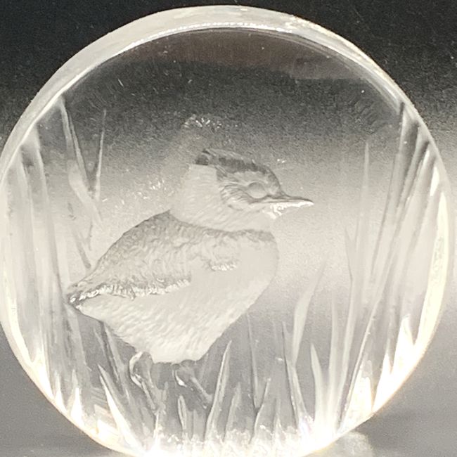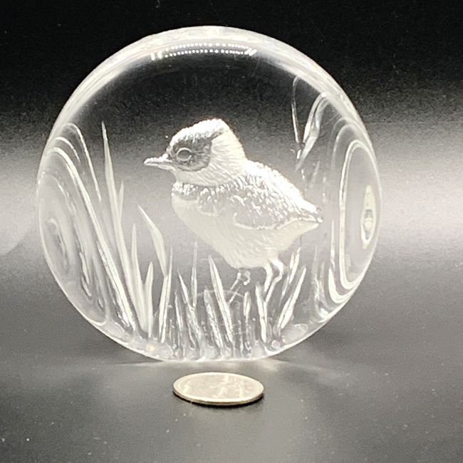 Current Bid: $24.50 [Refresh Price]YOU WILL NEED TO REFRESH THIS PAGE TO SEE UPDATED BID (Log in and this will update automatically) You must LOG IN or REGISTER to see this full page auction listing and bid. Auction is Over Winning Bid Amount: $24.50 **Lot Details: (LOT: R113) - A Signed Mats Jonasson Maleras Crystal Bird Chick Sculpture. It is made of hand-engraved lead crystal. The design features a sandblasted, textured 3D image of a baby bird on the reverse side. Approximately 3.5" h. Log in to add this lot to your watch list or place a bid |