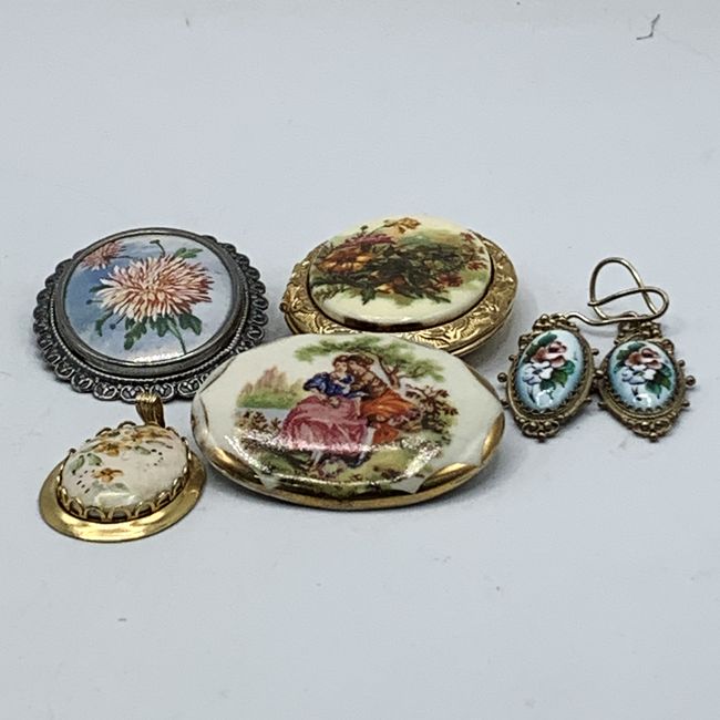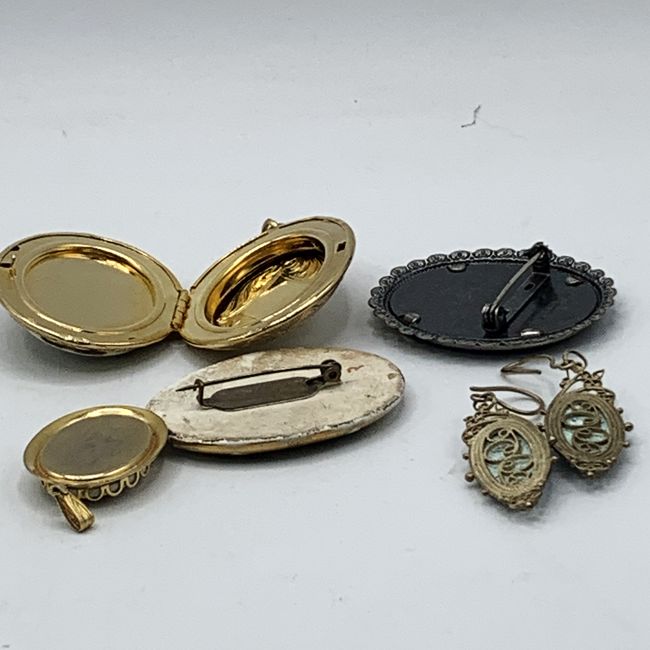 Current Bid: $11.00 [Refresh Price]YOU WILL NEED TO REFRESH THIS PAGE TO SEE UPDATED BID (Log in and this will update automatically) You must LOG IN or REGISTER to see this full page auction listing and bid. Auction is Over Winning Bid Amount: $11.00 **Lot Details: (LOT: R122) - Vintage Floral-themed Jewelry Pieces including a locket, a pendant, filigree earrings, a porcelain brooch that looks quite old and another brooch that is signed "Exquisite". Age of the pieces varies and a coupl... Log in to add this lot to your watch list or place a bid (Number of people watching this lot: 1) |