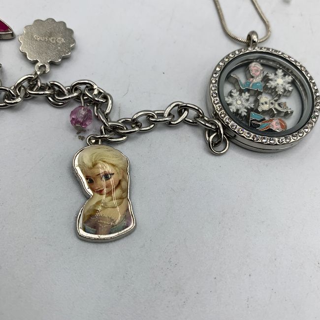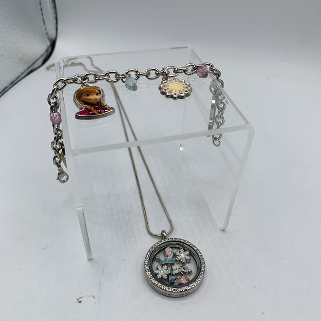 Current Bid: $24.00 [Refresh Price]YOU WILL NEED TO REFRESH THIS PAGE TO SEE UPDATED BID (Log in and this will update automatically) You must LOG IN or REGISTER to see this full page auction listing and bid. Auction is Over Winning Bid Amount: $24.00 **Lot Details: (LOT: R123) - Disney Frozen 925 Necklace with Charm Bracelet. Unmarked locket is suspended on a sterling silver chain measuring 20.5". Bracelet is 7" and charms are marked Disney. Locket can be open to rearrange the charms i... Log in to add this lot to your watch list or place a bid (Number of people watching this lot: 2) |