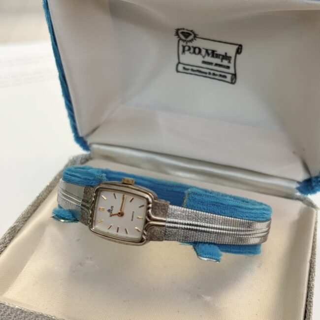 Current Bid: $11.00 [Refresh Price]YOU WILL NEED TO REFRESH THIS PAGE TO SEE UPDATED BID (Log in and this will update automatically) You must LOG IN or REGISTER to see this full page auction listing and bid. Auction is Over Winning Bid Amount: $11.00 **Lot Details: (LOT: R126) - Ladies Loras Watch. Working condition, fresh battery installed. In original PD Murphy box. Estate find. Log in to add this lot to your watch list or place a bid (Number of people watching this lot: 1) |