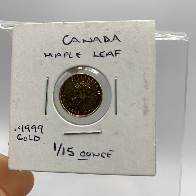 Current Bid: $420.01 [Refresh Price]YOU WILL NEED TO REFRESH THIS PAGE TO SEE UPDATED BID (Log in and this will update automatically) You must LOG IN or REGISTER to see this full page auction listing and bid. Auction is Over Winning Bid Amount: $420.01 **Lot Details: (LOT: S2) - Canada 1994 .9999 Gold Maple Leaf Coin. Gold Coin is 1/15th of One Ounce and Shows Wear. Gold is Skyrocketing. No Tax on Pure Gold! Log in to add this lot to your watch list or place a bid (Number of people watching this lot: 4) |