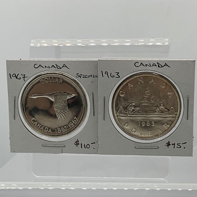 Current Bid: $139.00 [Refresh Price]YOU WILL NEED TO REFRESH THIS PAGE TO SEE UPDATED BID (Log in and this will update automatically) You must LOG IN or REGISTER to see this full page auction listing and bid. Auction is Over Winning Bid Amount: $139.00 **Lot Details: (LOT: S12) - Canada 1967 Specimen Silver Dollar and a Gorgeous 1963 Silver Dollar. Beautiful, Large Silver Coins. Log in to add this lot to your watch list or place a bid (Number of people watching this lot: 7) |