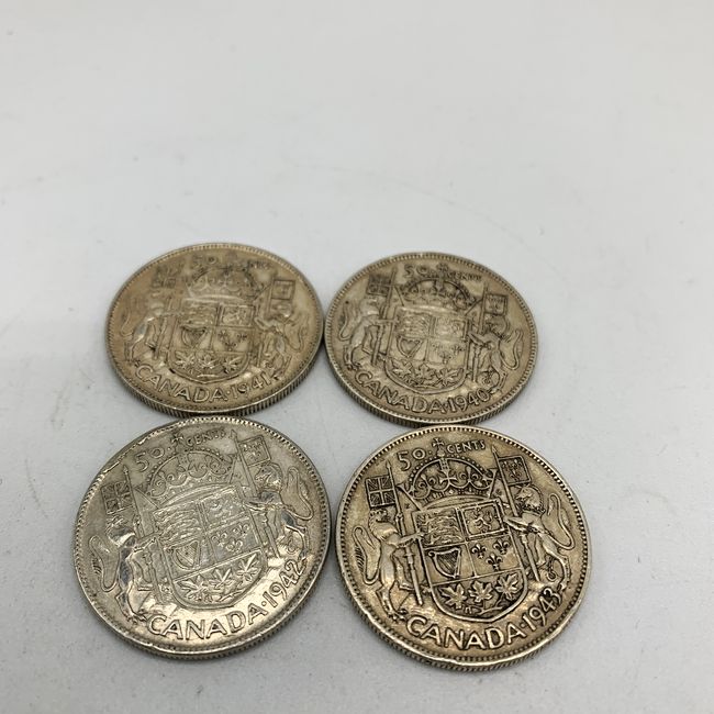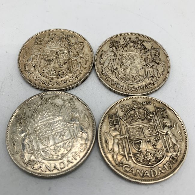 Current Bid: $111.05 [Refresh Price]YOU WILL NEED TO REFRESH THIS PAGE TO SEE UPDATED BID (Log in and this will update automatically) You must LOG IN or REGISTER to see this full page auction listing and bid. Auction is Over Winning Bid Amount: $111.05 **Lot Details: (LOT: S13) - Canada, Lot of Four, WWII Era Silver Half Dollars. 1940, 1941, 1942 and 1943 are Represented in this Beautiful .800 Silver Lot. Log in to add this lot to your watch list or place a bid |