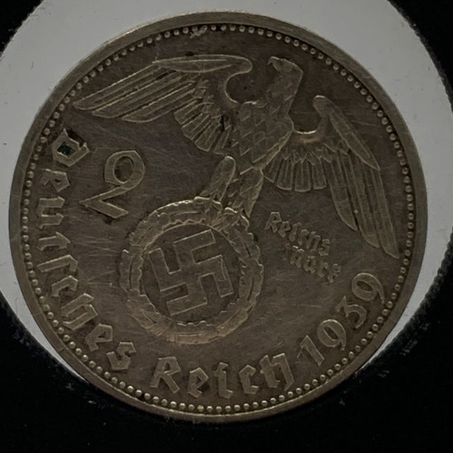 Current Bid: $53.99 [Refresh Price]YOU WILL NEED TO REFRESH THIS PAGE TO SEE UPDATED BID (Log in and this will update automatically) You must LOG IN or REGISTER to see this full page auction listing and bid. Auction is Over Winning Bid Amount: $53.99 **Lot Details: (LOT: S23) - Germany 1939 (Nazi Era), Two Silver Reichsmark Coin, .800 Silver. Nazi Era Coin with the German Eagle holding a Swastika in its Talons. Very Hard to Find Historic Artifact in Beautiful Condition with Clarity in All De... Log in to add this lot to your watch list or place a bid |