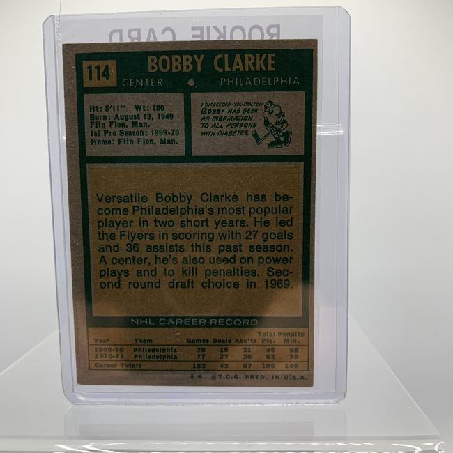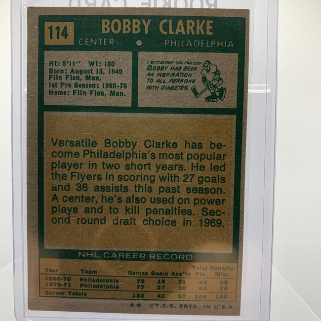 Current Bid: $31.03 [Refresh Price]YOU WILL NEED TO REFRESH THIS PAGE TO SEE UPDATED BID (Log in and this will update automatically) You must LOG IN or REGISTER to see this full page auction listing and bid. Auction is Over Winning Bid Amount: $31.03 **Lot Details: (LOT: S25) - Bobby Clarke 1970-71 TOPPS Rookie Card. One of the NHL’s Best Centers, the Card is in Beautiful Condition with Perfect Corners. Log in to add this lot to your watch list or place a bid |