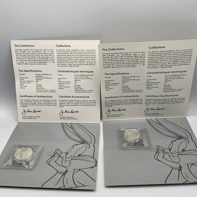 Current Bid: $103.00 [Refresh Price]YOU WILL NEED TO REFRESH THIS PAGE TO SEE UPDATED BID (Log in and this will update automatically) You must LOG IN or REGISTER to see this full page auction listing and bid. Auction is Over Winning Bid Amount: $103.00 **Lot Details: (LOT: S28) - Canada Lot of Two 2015 Bugs Bunny .9999 Pure Silver Coins. Prices are Surging Due to Silver Increases. Log in to add this lot to your watch list or place a bid |