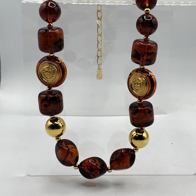 Current Bid: $15.50 [Refresh Price]YOU WILL NEED TO REFRESH THIS PAGE TO SEE UPDATED BID (Log in and this will update automatically) You must LOG IN or REGISTER to see this full page auction listing and bid. Auction is Over Winning Bid Amount: $15.50 **Lot Details: (LOT: S47) - Signed Vintage Crown Crested “LC” Liz Claiborne Amber Chunky Crested tapered Necklace, 26.5” end to end highlighted with gold balls in between each graduated amber balls And appears barely worn, really well take... Log in to add this lot to your watch list or place a bid |