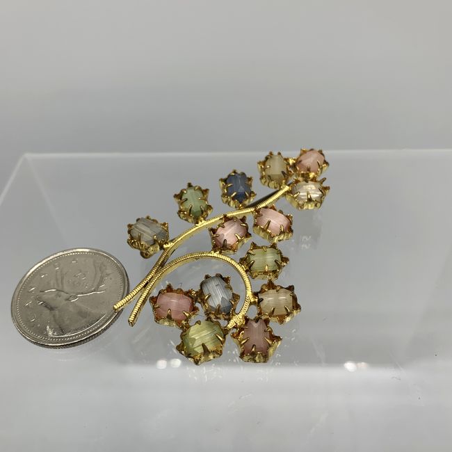 Current Bid: $11.00 [Refresh Price]YOU WILL NEED TO REFRESH THIS PAGE TO SEE UPDATED BID (Log in and this will update automatically) You must LOG IN or REGISTER to see this full page auction listing and bid. Auction is Over Winning Bid Amount: $11.00 **Lot Details: (LOT: S54) - 1960s Frosted Satin faceted colourful Glass multiple prong set Brooch, 2.25”, well taken care of, Ready for Mom Valentines Day ! Log in to add this lot to your watch list or place a bid |