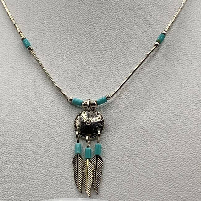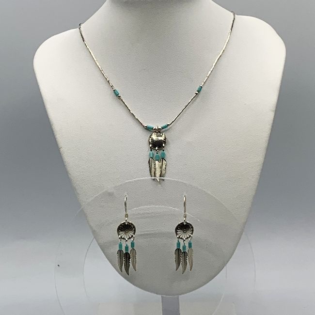 Current Bid: $17.00 [Refresh Price]YOU WILL NEED TO REFRESH THIS PAGE TO SEE UPDATED BID (Log in and this will update automatically) You must LOG IN or REGISTER to see this full page auction listing and bid. Auction is Over Winning Bid Amount: $17.00 **Lot Details: (LOT: S57) - Set Liquid Sterling Native Turquoise Feather Necklace, 16” And Matching Turquoise Sterling Feather Drop Earrings, both Verified Sterling And appears never worn ! Log in to add this lot to your watch list or place a bid |