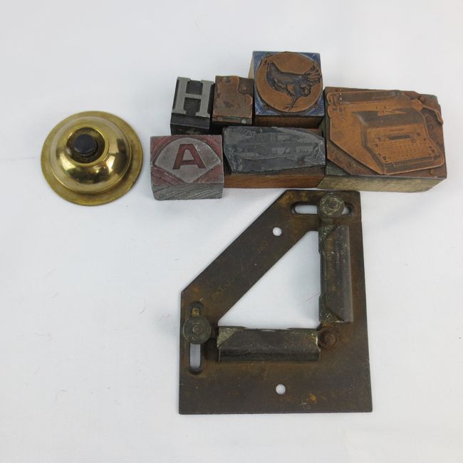 Current Bid: $11.11 [Refresh Price]YOU WILL NEED TO REFRESH THIS PAGE TO SEE UPDATED BID (Log in and this will update automatically) You must LOG IN or REGISTER to see this full page auction listing and bid. Auction is Over Winning Bid Amount: $11.11 **Lot Details: (LOT: T295) - various hardware, vintage door-stop, unusual square, and small printing blocks Log in to add this lot to your watch list or place a bid |