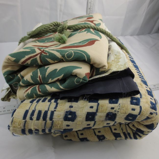 Current Bid: $7.00 [Refresh Price]YOU WILL NEED TO REFRESH THIS PAGE TO SEE UPDATED BID (Log in and this will update automatically) You must LOG IN or REGISTER to see this full page auction listing and bid. Auction is Over Winning Bid Amount: $7.00 **Lot Details: (LOT: T305) - several pieces of very nice upholstery material. Some woven, velvet, some would make really nice seat or cushion covers Log in to add this lot to your watch list or place a bid |