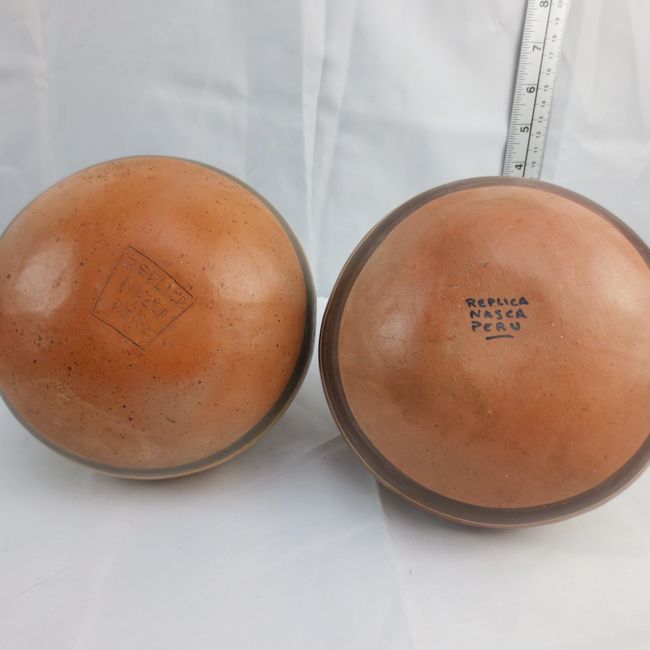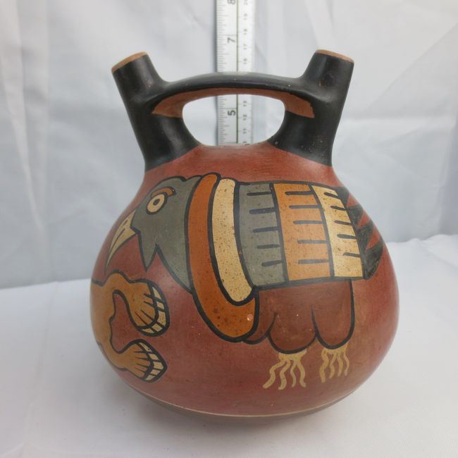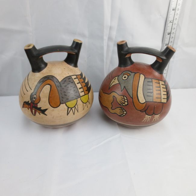 Current Bid: $11.09 [Refresh Price]YOU WILL NEED TO REFRESH THIS PAGE TO SEE UPDATED BID (Log in and this will update automatically) You must LOG IN or REGISTER to see this full page auction listing and bid. Auction is Over Winning Bid Amount: $11.09 **Lot Details: (LOT: T308) - Two Peruvian Nazca-style poly-chrome reproduction bottles of ancient Pre-Columbian double-spout and bridge handle designceramics. Log in to add this lot to your watch list or place a bid |