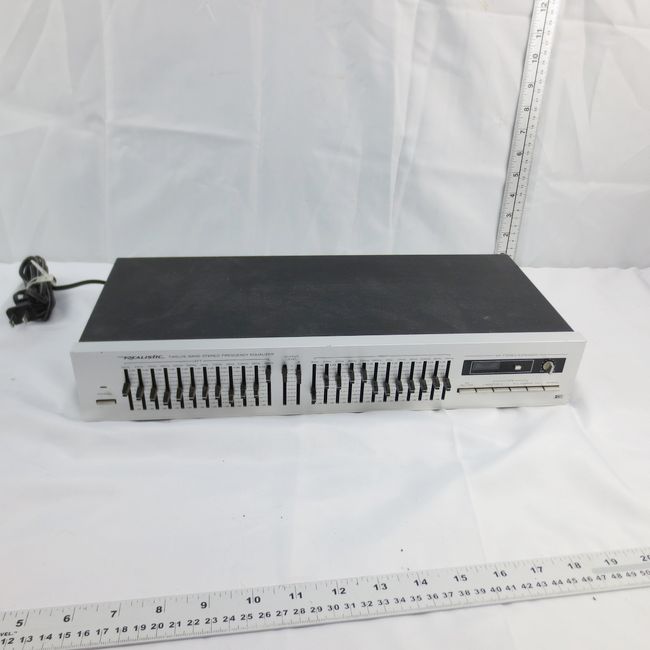 Current Bid: $31.22 [Refresh Price]YOU WILL NEED TO REFRESH THIS PAGE TO SEE UPDATED BID (Log in and this will update automatically) You must LOG IN or REGISTER to see this full page auction listing and bid. Auction is Over Winning Bid Amount: $31.22 **Lot Details: (LOT: T315) - Realistic 12 Band Stereo Frequency Equalizer. Model 31-2010. Left and right channels. 12 frequencies per channel. Features a bypass switch to give concert hall effects. Clean. Log in to add this lot to your watch list or place a bid |
