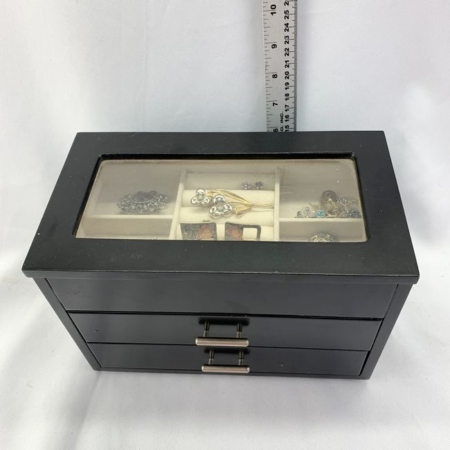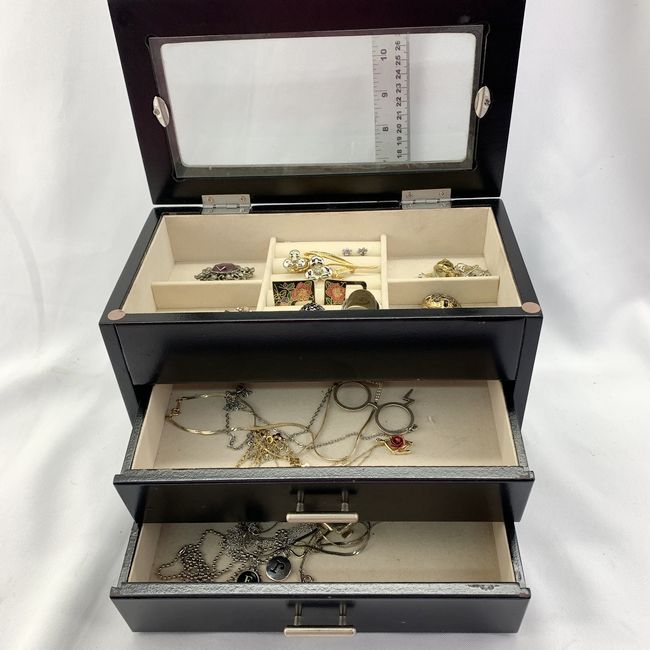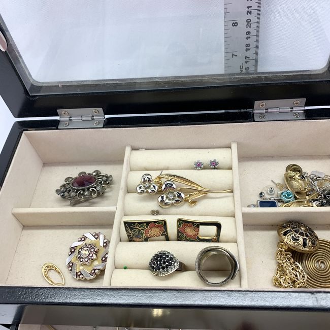 Current Bid: $25.00 [Refresh Price]YOU WILL NEED TO REFRESH THIS PAGE TO SEE UPDATED BID (Log in and this will update automatically) You must LOG IN or REGISTER to see this full page auction listing and bid. Auction is Over Winning Bid Amount: $25.00 **Lot Details: (LOT: T136) - Curated Jewelry Box: Decorative jewelry box sold complete with a variety of costume jewelry contents. Log in to add this lot to your watch list or place a bid |