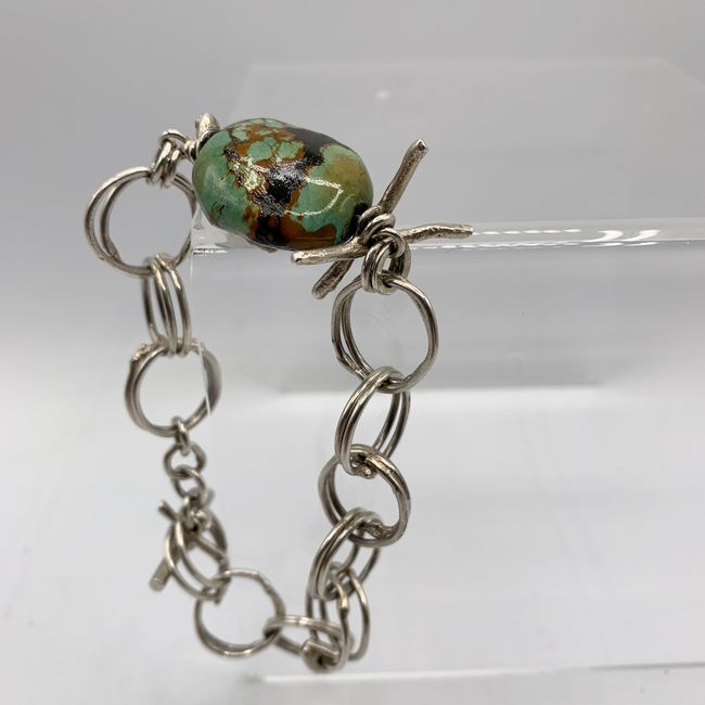Current Bid: $7.00 [Refresh Price]YOU WILL NEED TO REFRESH THIS PAGE TO SEE UPDATED BID (Log in and this will update automatically) You must LOG IN or REGISTER to see this full page auction listing and bid. Auction is Over Winning Bid Amount: $7.00 **Lot Details: (LOT: T152) - Turquoise Chain Link Bracelet. 7 1/2” long. No silver marks we could find. Log in to add this lot to your watch list or place a bid |