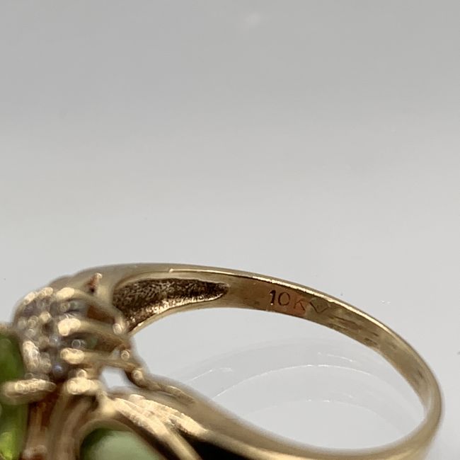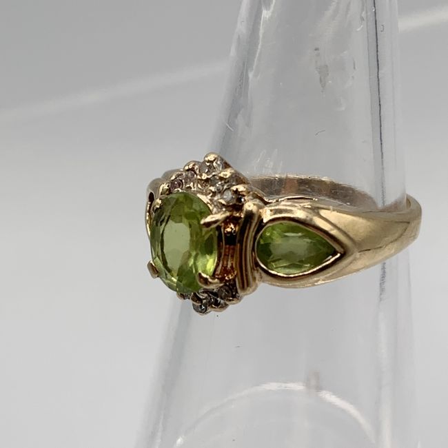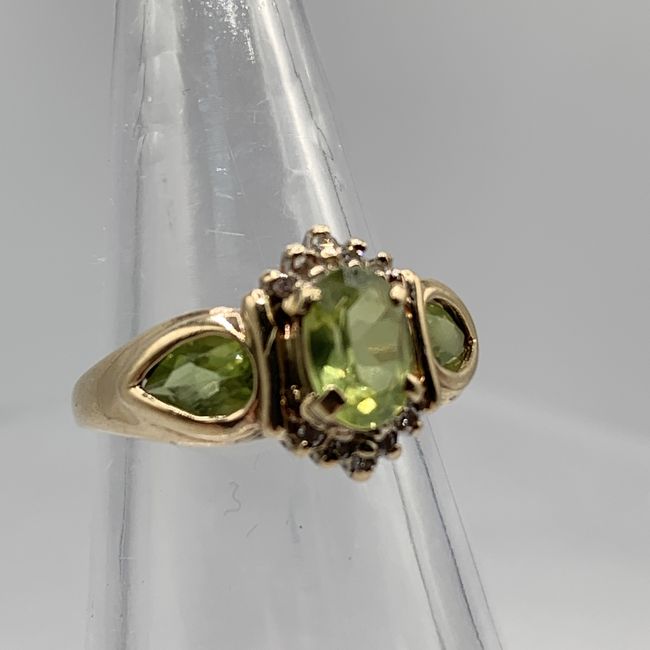 Current Bid: $191.22 [Refresh Price]YOU WILL NEED TO REFRESH THIS PAGE TO SEE UPDATED BID (Log in and this will update automatically) You must LOG IN or REGISTER to see this full page auction listing and bid. Auction is Over Winning Bid Amount: $191.22 **Lot Details: (LOT: U1) - Vintage 10K Yellow Gold Peridot Engagement Ring. Beautiful Ring with a Large Oval Peridot Stone and Two More Pear Shaped Flanking Stones, Encrusted with Ten Small Diamonds. Ring is Size 6 with an Overall Weight of 3.1 ... Log in to add this lot to your watch list or place a bid |