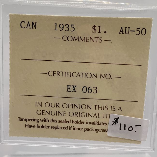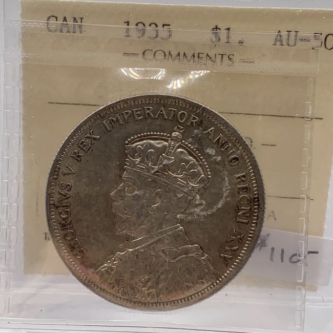 Current Bid: $62.00 [Refresh Price]YOU WILL NEED TO REFRESH THIS PAGE TO SEE UPDATED BID (Log in and this will update automatically) You must LOG IN or REGISTER to see this full page auction listing and bid. Auction is Over Winning Bid Amount: $62.00 **Lot Details: (LOT: U8) - Canada 1935 Silver Dollar, ICCS Certified AU-50. Canada’s First Silver Dollar with Gorgeous Eye Appeal Showing King George V. Log in to add this lot to your watch list or place a bid |