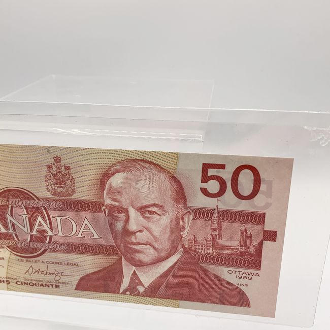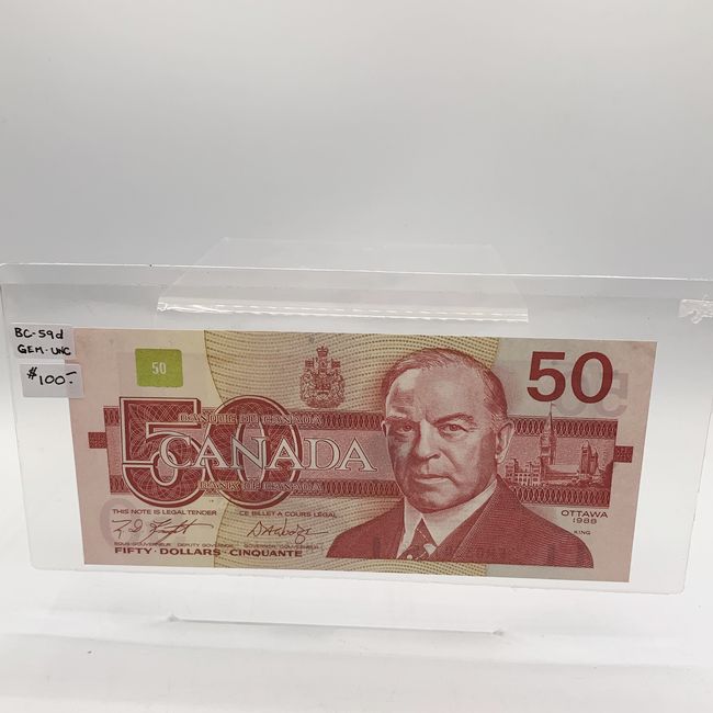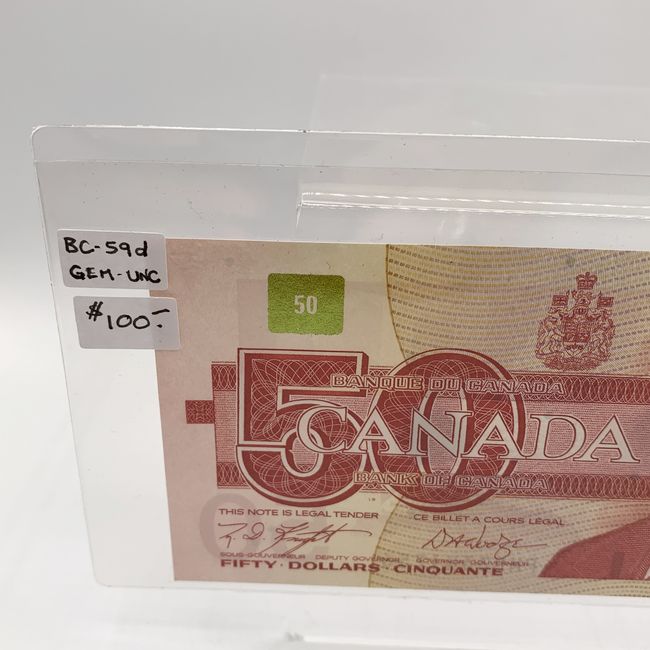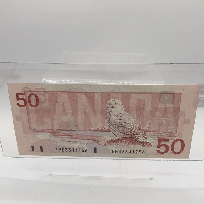 Current Bid: $52.00 [Refresh Price]YOU WILL NEED TO REFRESH THIS PAGE TO SEE UPDATED BID (Log in and this will update automatically) You must LOG IN or REGISTER to see this full page auction listing and bid. Auction is Over Winning Bid Amount: $52.00 **Lot Details: (LOT: U23) - Canada 1988 Fifty Dollars Banknote in Gorgeous Uncirculated Condition. From the Bird Series, Showing the Snowy Owl Reverse. Ready for Certification. Log in to add this lot to your watch list or place a bid |