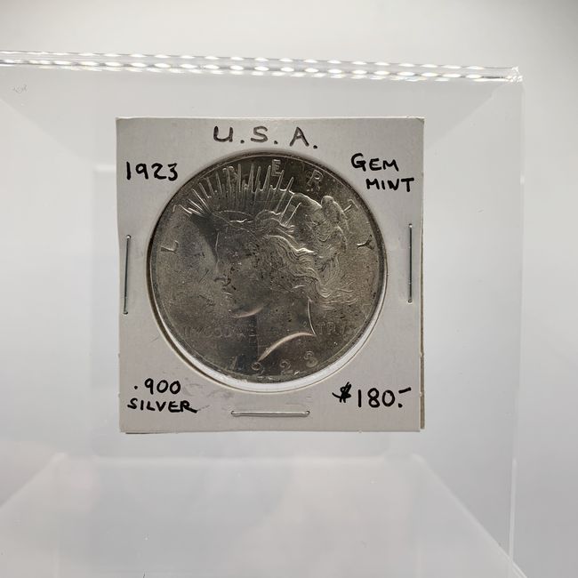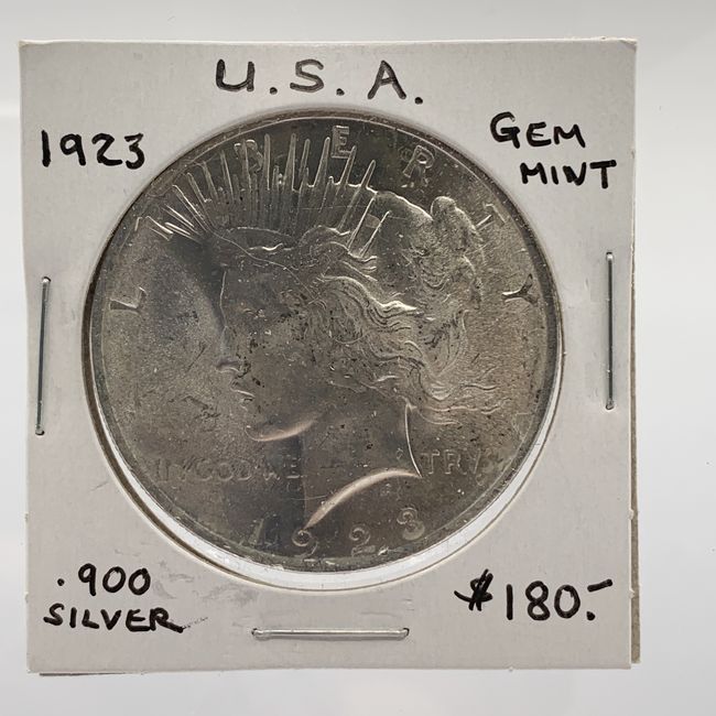 Current Bid: $110.00 [Refresh Price]YOU WILL NEED TO REFRESH THIS PAGE TO SEE UPDATED BID (Log in and this will update automatically) You must LOG IN or REGISTER to see this full page auction listing and bid. Auction is Over Winning Bid Amount: $110.00 **Lot Details: (LOT: U28) - U.S.A. 1923 Silver Dollar in Gorgeous Condition. Absolute Gem Example of the Large .900 Silver Dollar. Should be Certified. Log in to add this lot to your watch list or place a bid |