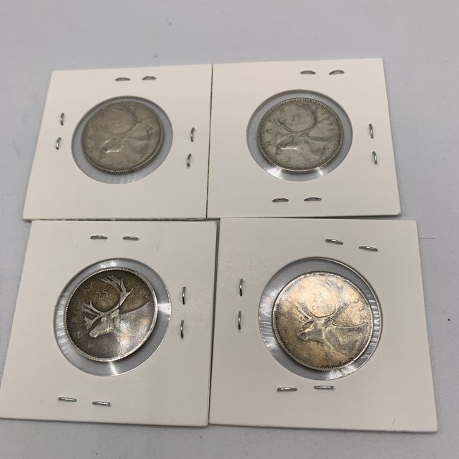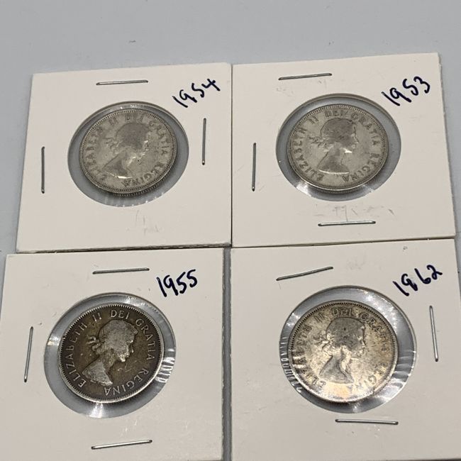 Current Bid: $56.54 [Refresh Price]YOU WILL NEED TO REFRESH THIS PAGE TO SEE UPDATED BID (Log in and this will update automatically) You must LOG IN or REGISTER to see this full page auction listing and bid. Auction is Over Winning Bid Amount: $56.54 **Lot Details: (LOT: U33) - A total of 4 Canadian quarters with Queen Elizabeth II, 1953. 1954, 1955 and 1962. All silver. Log in to add this lot to your watch list or place a bid |