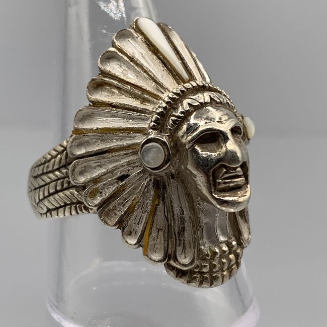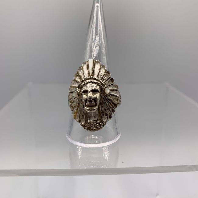 Current Bid: $29.50 [Refresh Price]YOU WILL NEED TO REFRESH THIS PAGE TO SEE UPDATED BID (Log in and this will update automatically) You must LOG IN or REGISTER to see this full page auction listing and bid. Auction is Over Winning Bid Amount: $29.50 **Lot Details: (LOT: U47) - Vintage Sterling North American Indian Chief Ring in Full HeadDress, size 10.75 And Verified Sterling Log in to add this lot to your watch list or place a bid |