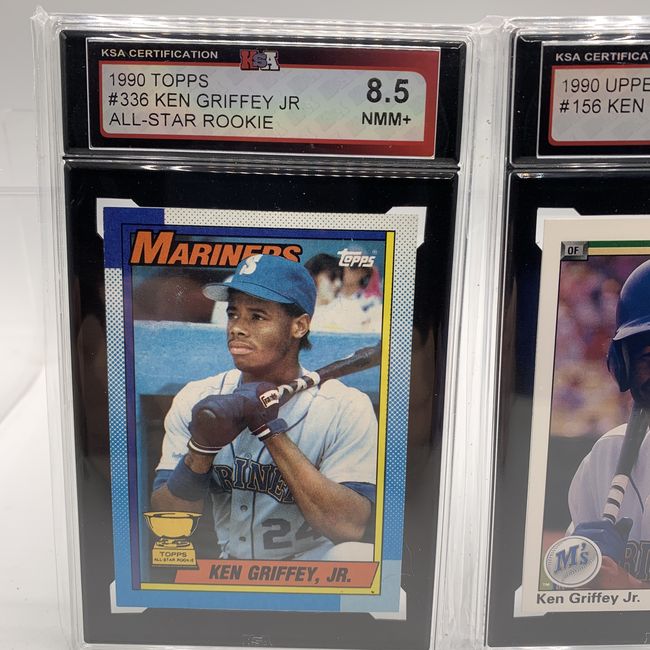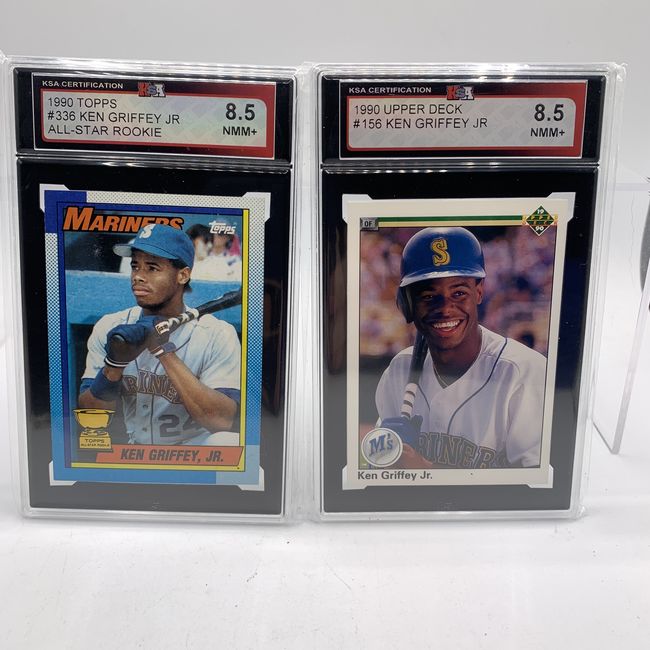 Current Bid: $67.01 [Refresh Price]YOU WILL NEED TO REFRESH THIS PAGE TO SEE UPDATED BID (Log in and this will update automatically) You must LOG IN or REGISTER to see this full page auction listing and bid. Auction is Over Winning Bid Amount: $67.01 **Lot Details: (LOT: U62) - Lot of two Hall of Fame Baseball Legend Ken Griffey Jr professionally graded cards from 1990 both very iconic. Graded Near Mint-Mint+. Log in to add this lot to your watch list or place a bid |