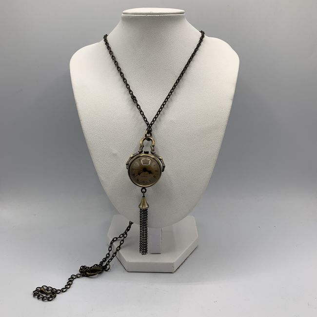 Current Bid: $13.66 [Refresh Price]YOU WILL NEED TO REFRESH THIS PAGE TO SEE UPDATED BID (Log in and this will update automatically) You must LOG IN or REGISTER to see this full page auction listing and bid. Auction is Over Winning Bid Amount: $13.66 **Lot Details: (LOT: U66) - Vintage Chico's pendant quartz watch with unique design and magnified visible movement. Comes on nice long chain. Great shape, but needs a new battery. Log in to add this lot to your watch list or place a bid |