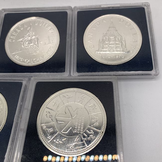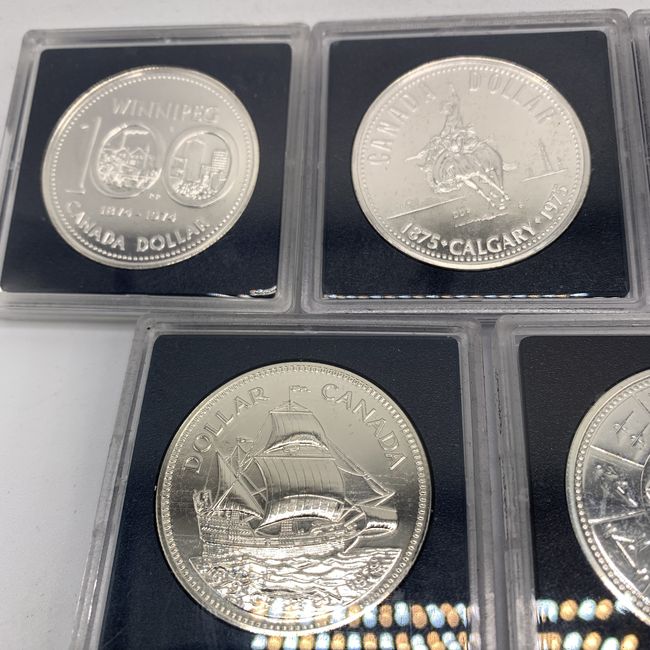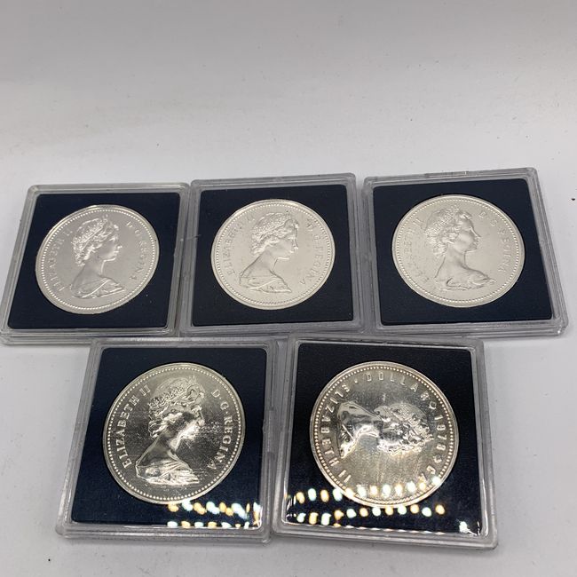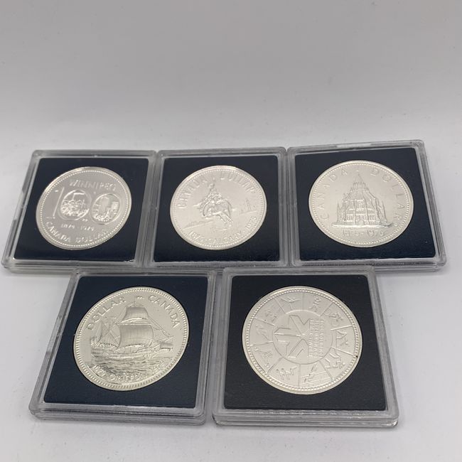 Current Bid: $87.00 [Refresh Price]YOU WILL NEED TO REFRESH THIS PAGE TO SEE UPDATED BID (Log in and this will update automatically) You must LOG IN or REGISTER to see this full page auction listing and bid. Auction is Over Winning Bid Amount: $87.00 **Lot Details: (LOT: U71) - Silver Stack Alert! Lot of 5 Canadian uncirculated .500 or 50 percent Silver weight silver Dollars. Includes 1974, 75, 76, 78 and 1979. Each comes in protective case. Log in to add this lot to your watch list or place a bid |