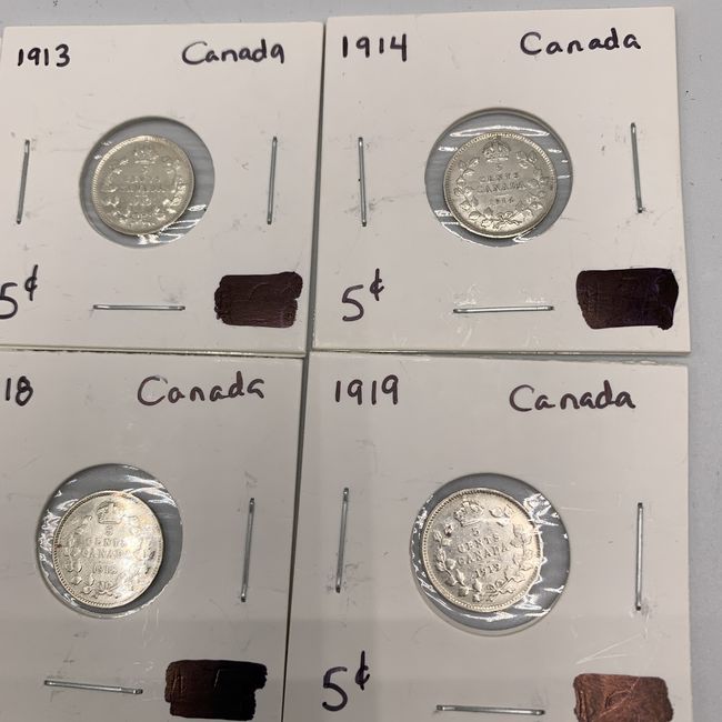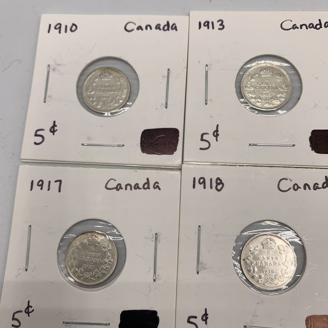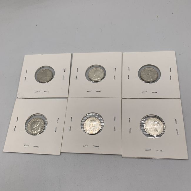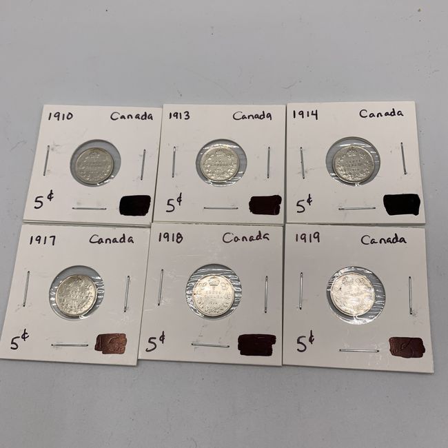 Current Bid: $87.01 [Refresh Price]YOU WILL NEED TO REFRESH THIS PAGE TO SEE UPDATED BID (Log in and this will update automatically) You must LOG IN or REGISTER to see this full page auction listing and bid. Auction is Over Winning Bid Amount: $87.01 **Lot Details: (LOT: U73) - Lot of 6 Canadian Sterling Silver small 5 cent pieces. Included in the lot are 1910, 13, 14, 17, 18 and 1919. Log in to add this lot to your watch list or place a bid |