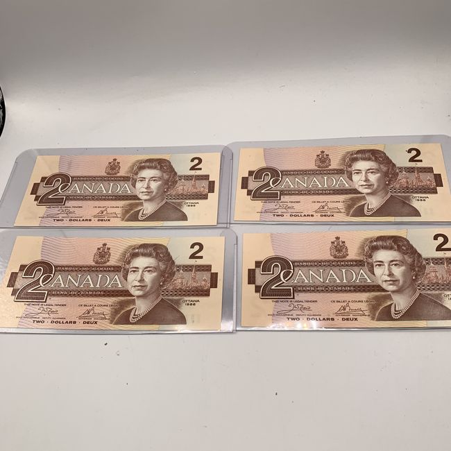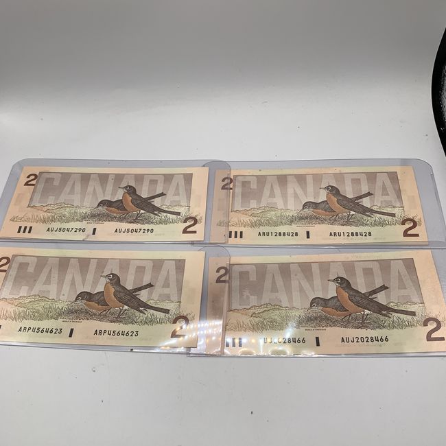 Current Bid: $12.00 [Refresh Price]YOU WILL NEED TO REFRESH THIS PAGE TO SEE UPDATED BID (Log in and this will update automatically) You must LOG IN or REGISTER to see this full page auction listing and bid. Auction is Over Winning Bid Amount: $12.00 **Lot Details: (LOT: U78) - Lot of 4 uncirculated Canadian $2 bills. All in excellent condition. Log in to add this lot to your watch list or place a bid |